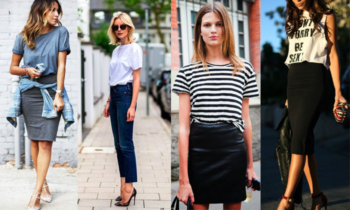 บางครั้งเสื้อยืดตัวเก่งก็อาจไม่เหมาะถ้าจะใส่ไปทำงาน แต่ถ้าเรามิกซ์แอนด์แมชท์ให้ดี ๆ อาศัย Accessories โน่นนิด นี่หน่อยมาเสริมเติมแต่ง ก็ทำให้เสื้อยืดธรรมดาดูทางการขึ้นอีกนิด สามารถใส่ไปทำงานได้สบาย อย่างเสื้อยืดเก๋ ๆ กับกระโปรงที่ค่อนข้างเป็นทางการ เอามาแมชท์กันก็ทำให้กระโปรงที่เป็นทางการมาก ๆ ดูซอฟท์ลง เปลี่ยนลุคของสาวทำงานที่ดูขรึมให้เป็นมิตรมากขึ้น แถมยังดูทันสมัยขึ้นด้วย